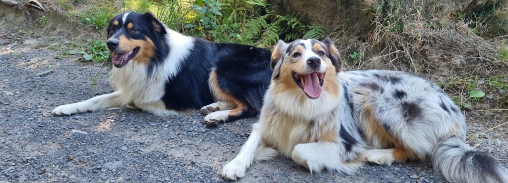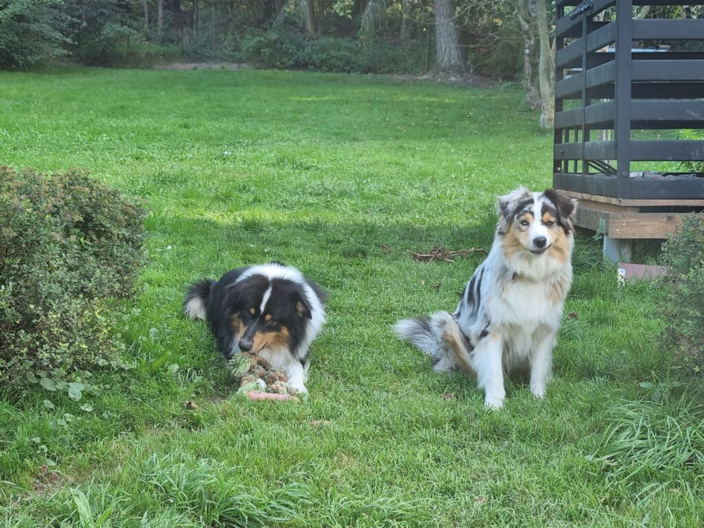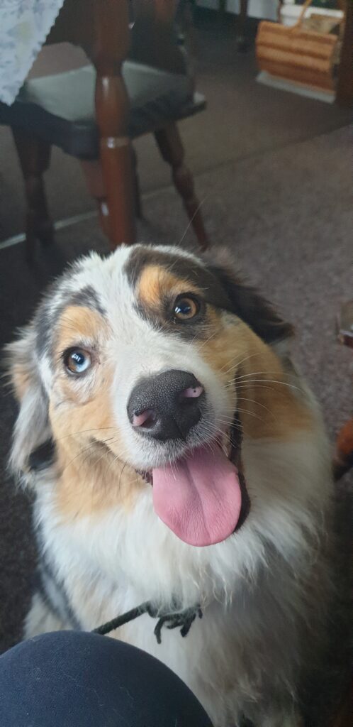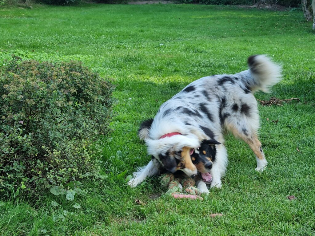 Luna je naše dvouletá blue merle princezna. Je velice něžná a společnská. Míček ji sice nic neřiká, ale chytit si Lokiho se nikdy nebojí, jen my se bojíme jak s ním zase bude válet sudy na poli.